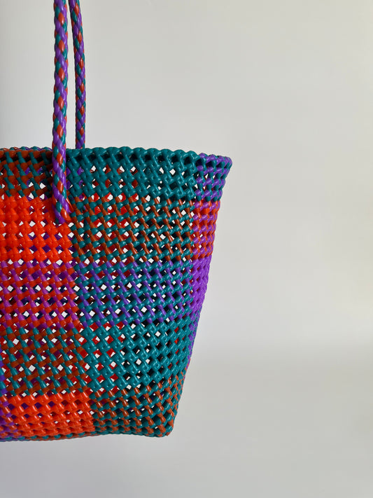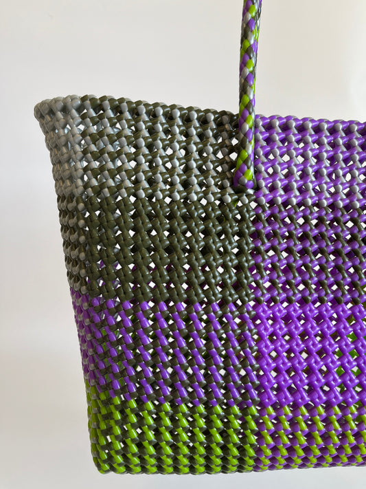 N°91L - SAC PANIER TRESSÉ MAIN - GRAND - violet & vert foncé