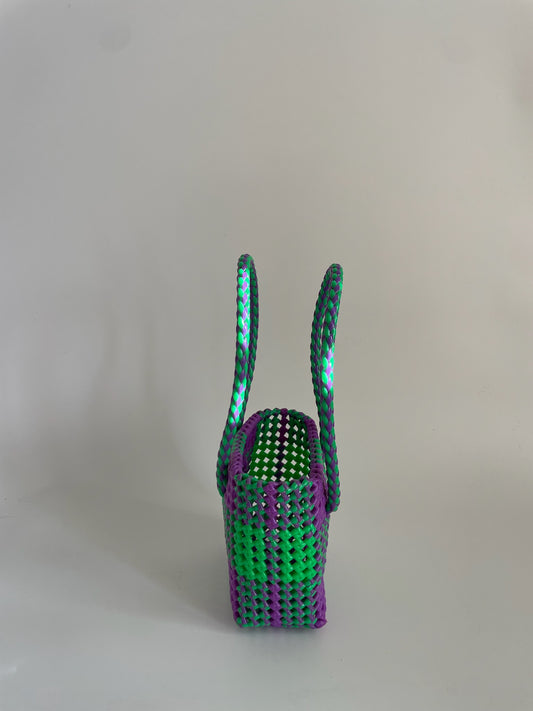 N°6XS - SAC PANIER TRESSÉ MAIN - MINI - vert clair & violet