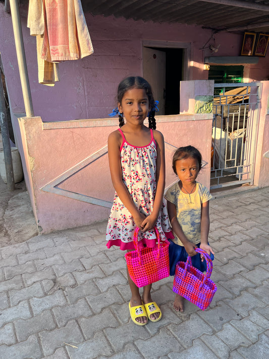 N°8XS bis - SAC PANIER TRESSÉ MAIN - MINI - rouge clair & violet