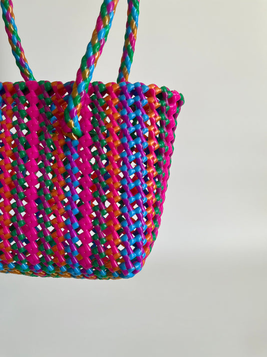 N°385XS - SAC PANIER TRESSÉ MAIN - MINI - multicolors