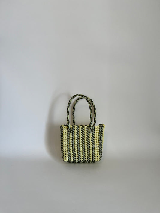 N°129XS - SAC PANIER TRESSÉ MAIN - MINI - jaune fluo & vert foncé