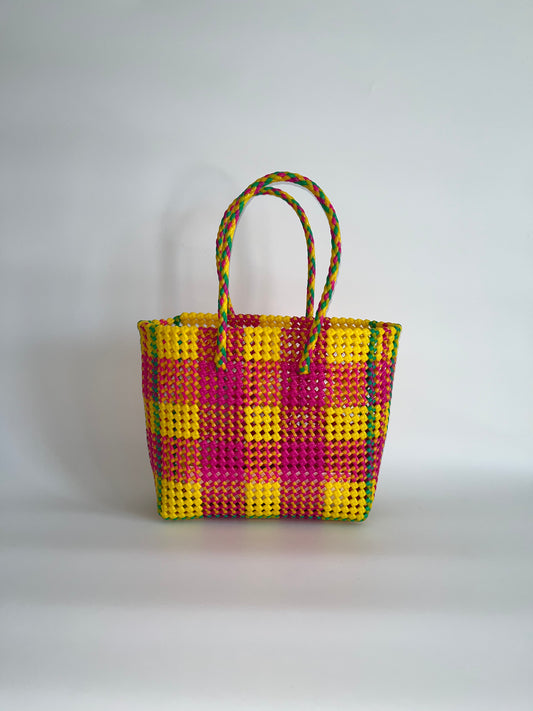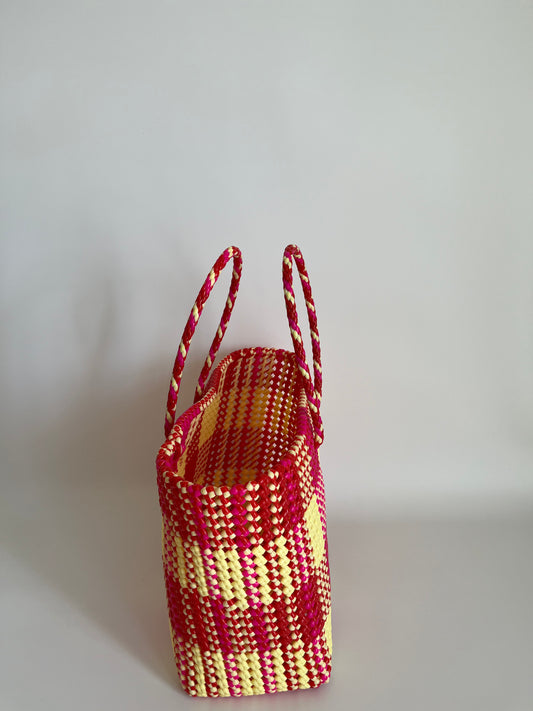 N°66S - SAC PANIER TRESSÉ MAIN - PETIT - multicolors
