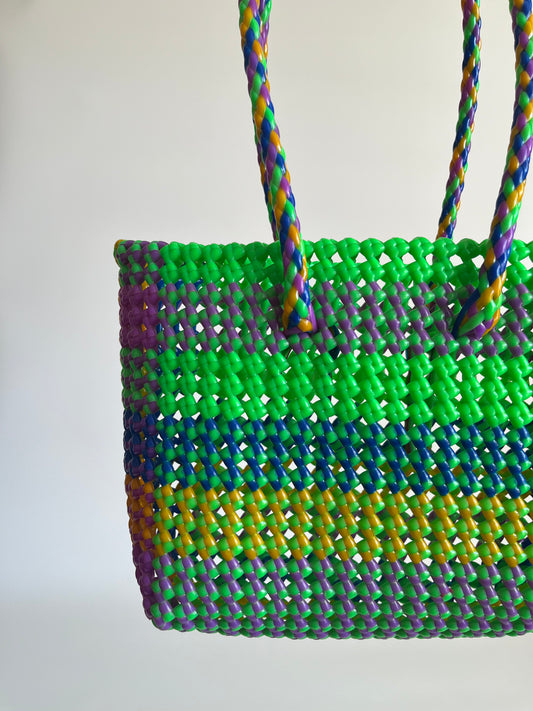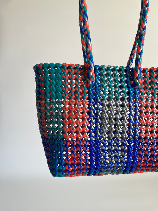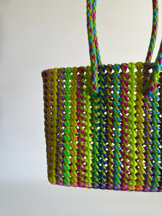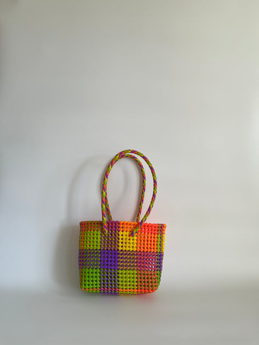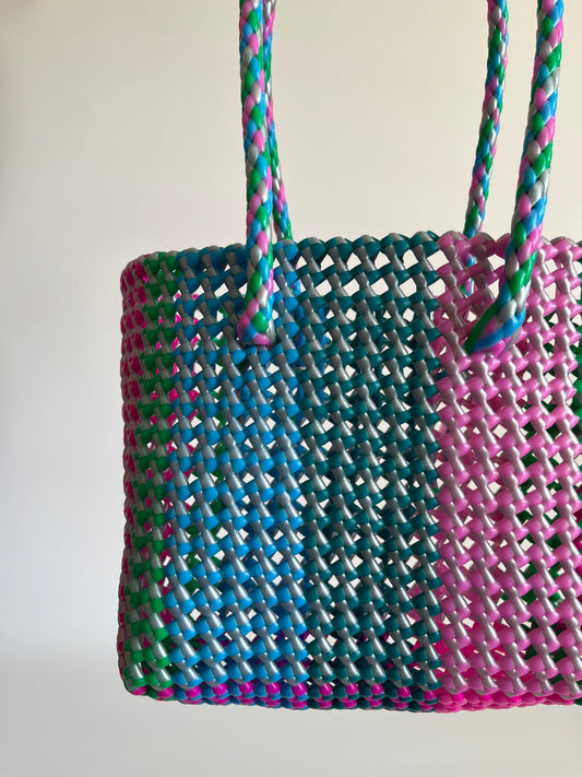 N°292S - SAC PANIER TRESSÉ MAIN - PETIT - multicolors