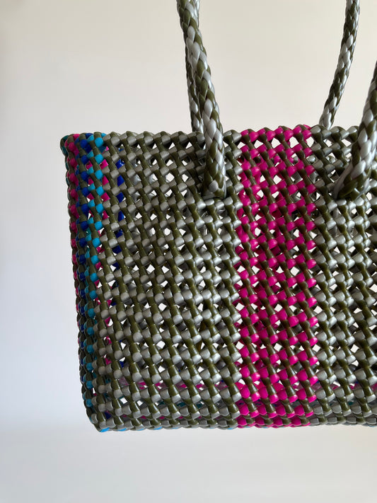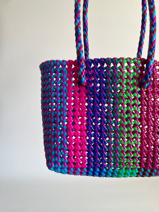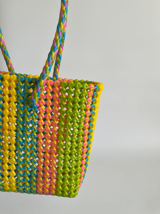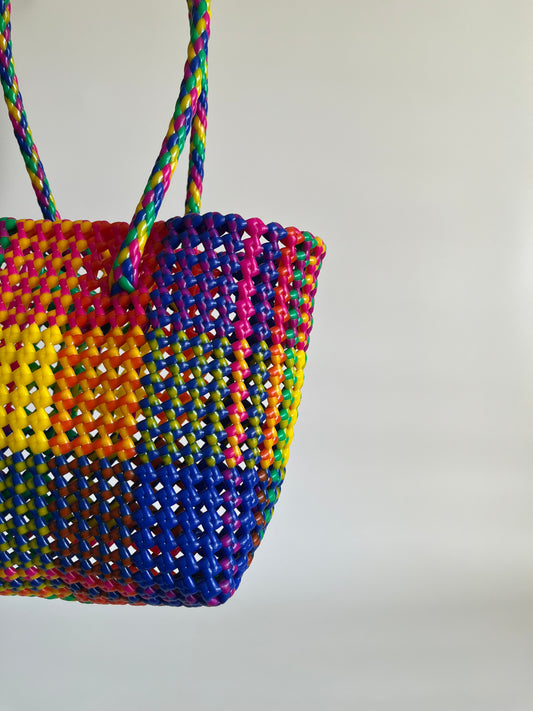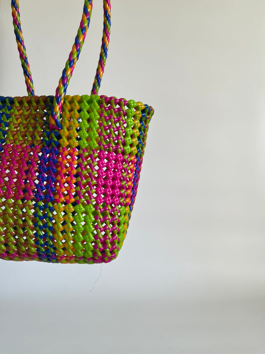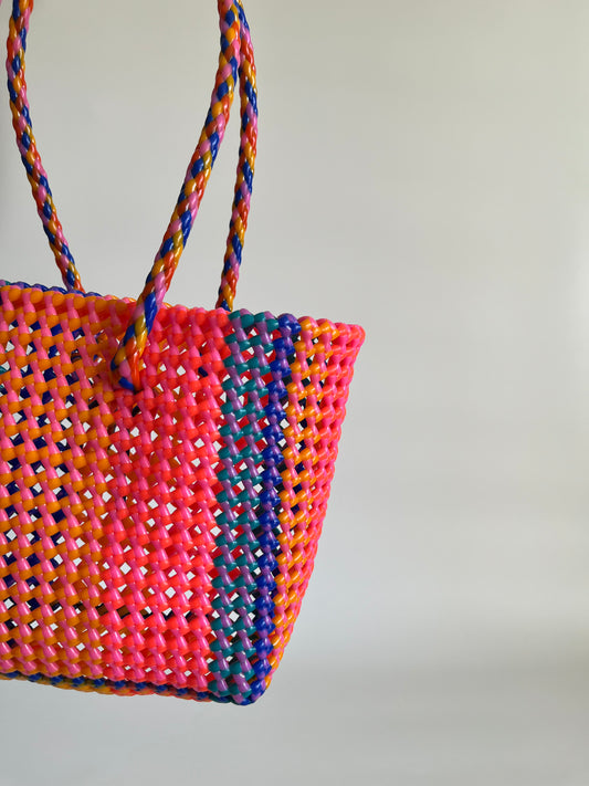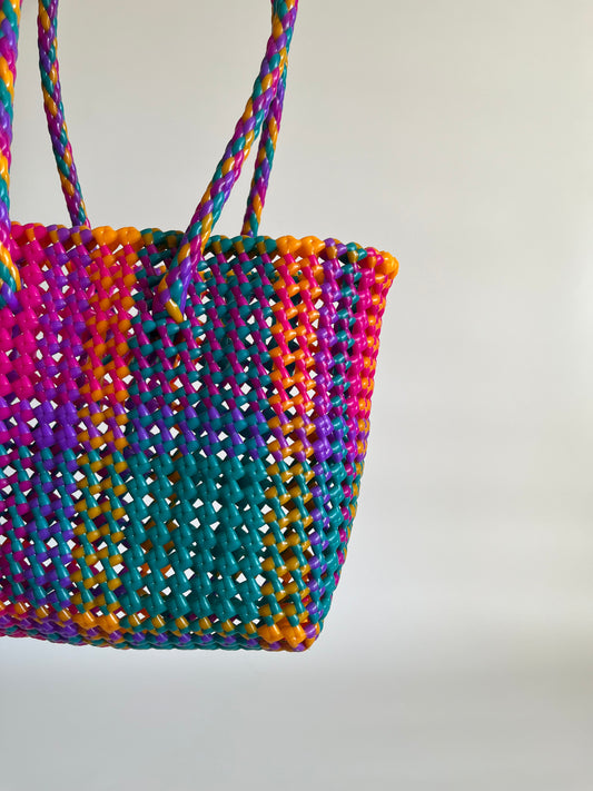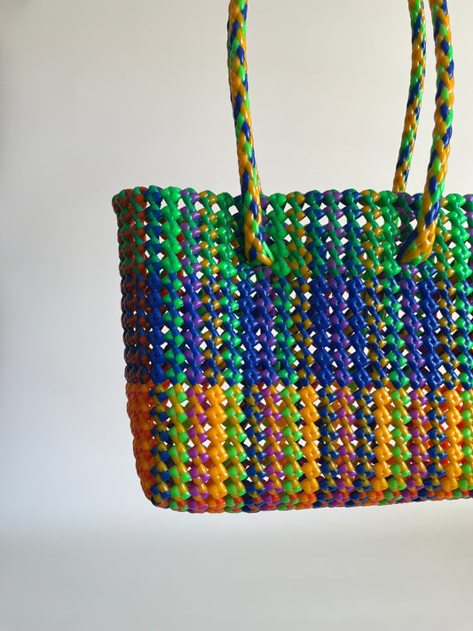 N°270S - SAC PANIER TRESSÉ MAIN - PETIT - multicolors