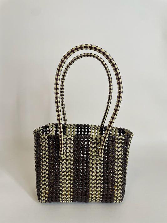 N°181S - SAC PANIER TRESSÉ MAIN - PETIT - marron & crème