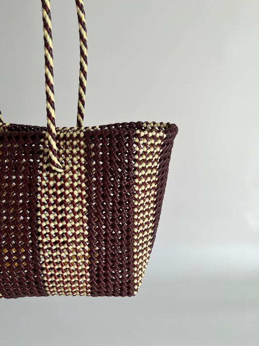 N°257M bis - SAC PANIER TRESSÉ MAIN - MOYEN - bordeaux & écru