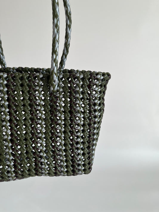 N°254XS - SAC PANIER TRESSÉ MAIN - MINI - marron & kaki