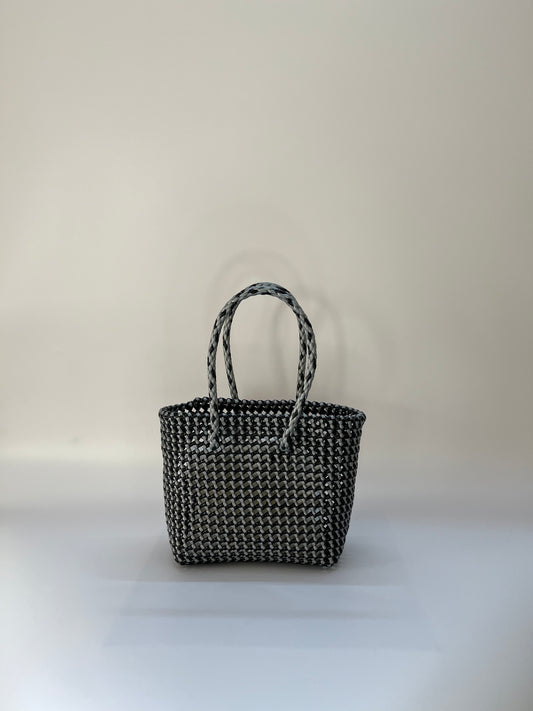 N°185S bis - SAC PANIER TRESSÉ MAIN - PETIT - argenté & noir