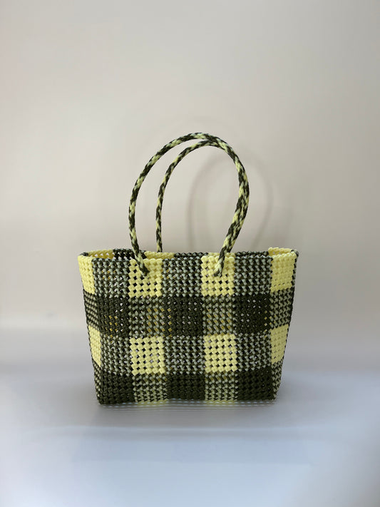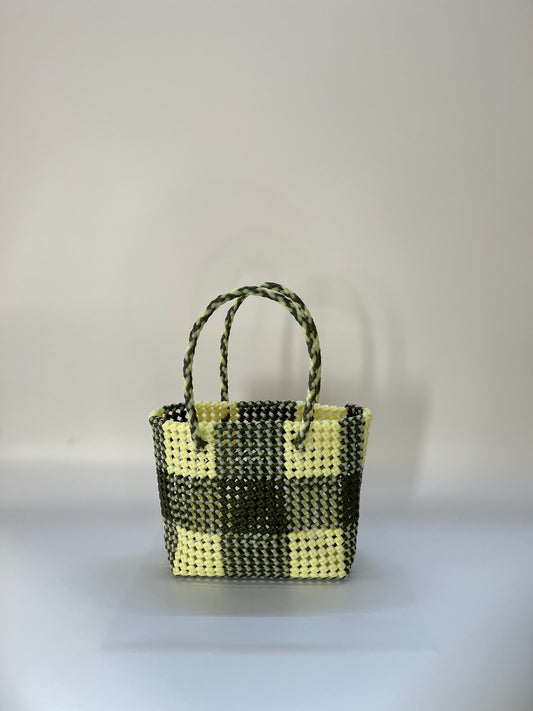 N°69S bis - SAC PANIER TRESSÉ MAIN - PETIT - kaki & jaune