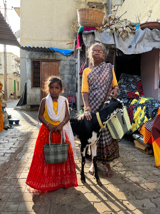 N°53S - SAC PANIER TRESSÉ MAIN - PETIT - multicolors