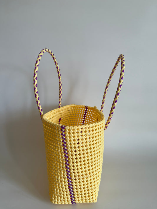 N°347L - SAC PANIER TRESSÉ MAIN - GRAND - crème (avec touche de violet)