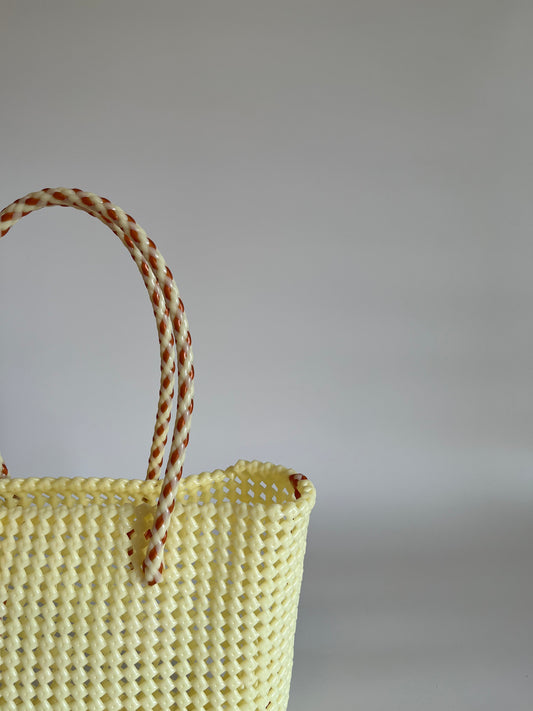 N°45M bis - SAC PANIER TRESSÉ MAIN - MOYEN - kaki & crème