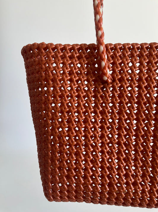 N°257S - SAC PANIER TRESSÉ MAIN - PETIT - bordeaux