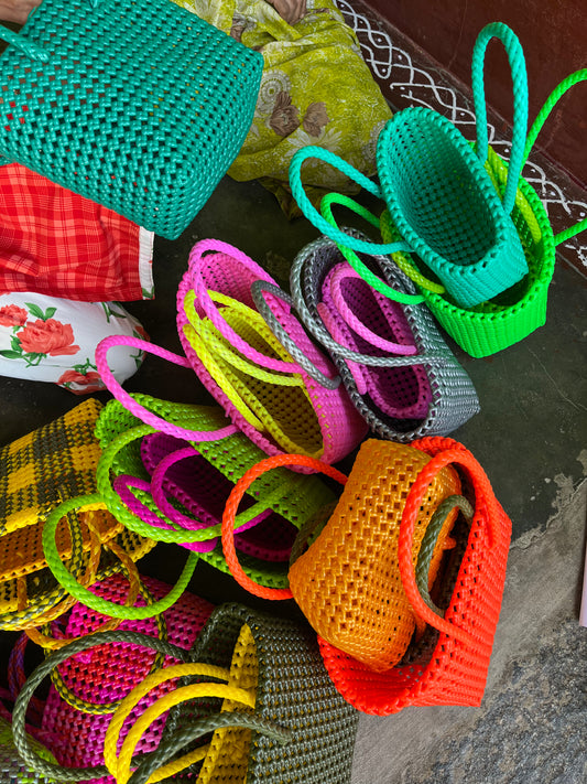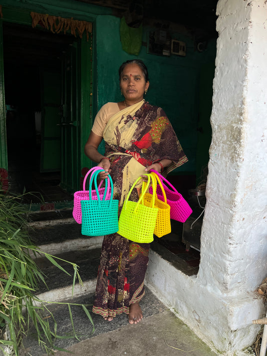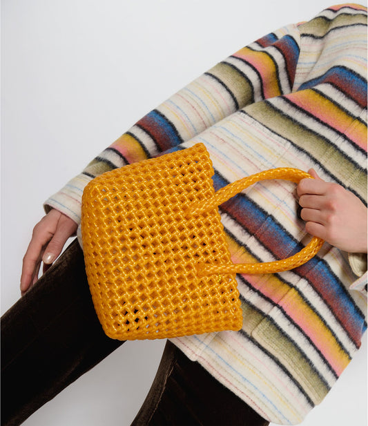 N°40XS - SAC PANIER TRESSÉ MAIN - MINI - jaune fluo