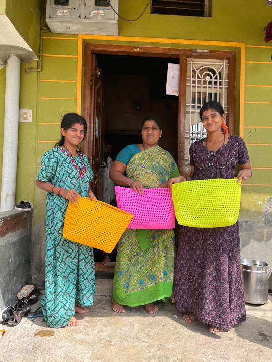 N°40L - SAC PANIER TRESSÉ MAIN - GRAND - jaune fluo