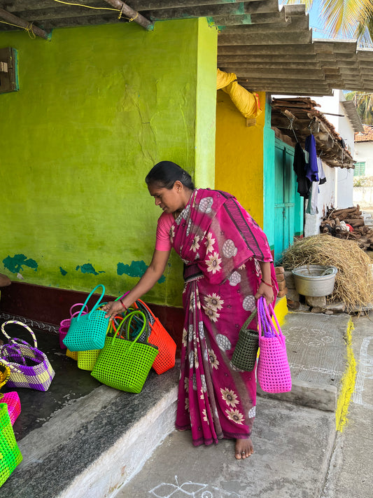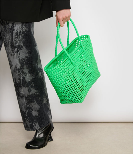 N°41L - SAC PANIER TRESSÉ MAIN - GRAND - vert fluo