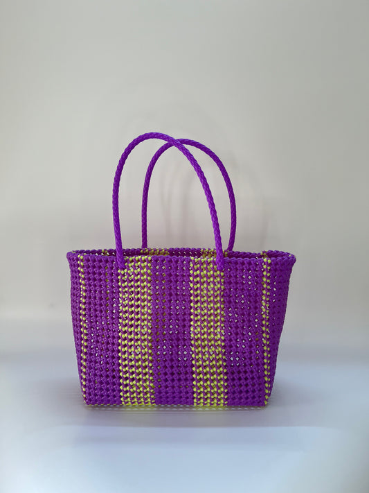 N°7L bis - SAC PANIER TRESSÉ MAIN - GRAND - jaune fluo & violet