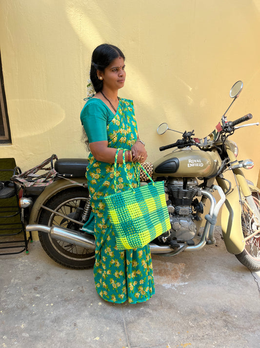 N°41L - SAC PANIER TRESSÉ MAIN - GRAND - vert fluo