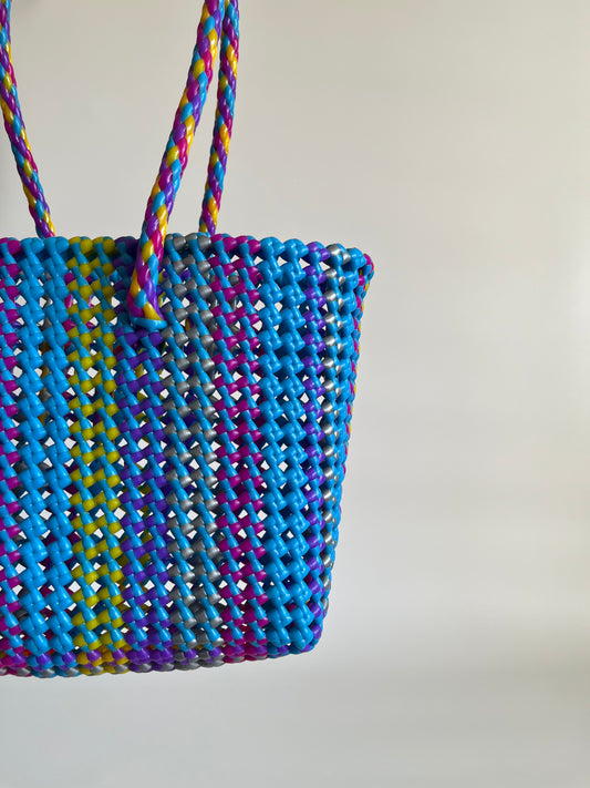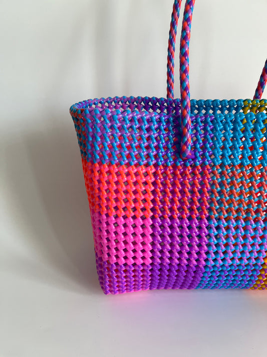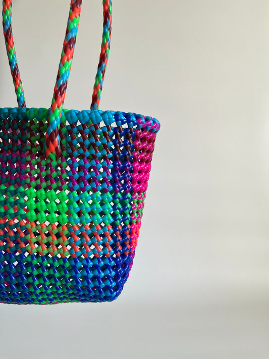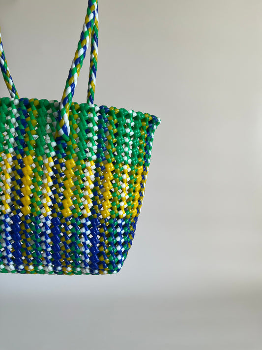 N°468S - SAC PANIER TRESSÉ MAIN - PETIT - multicolors