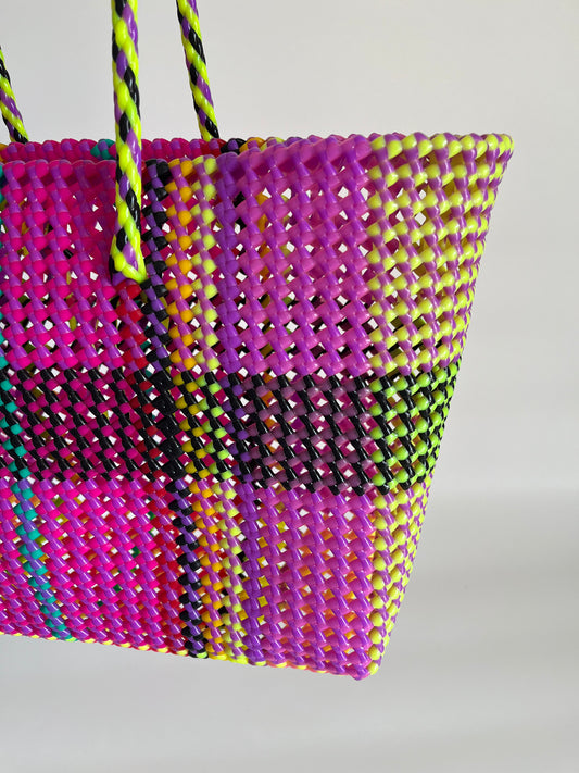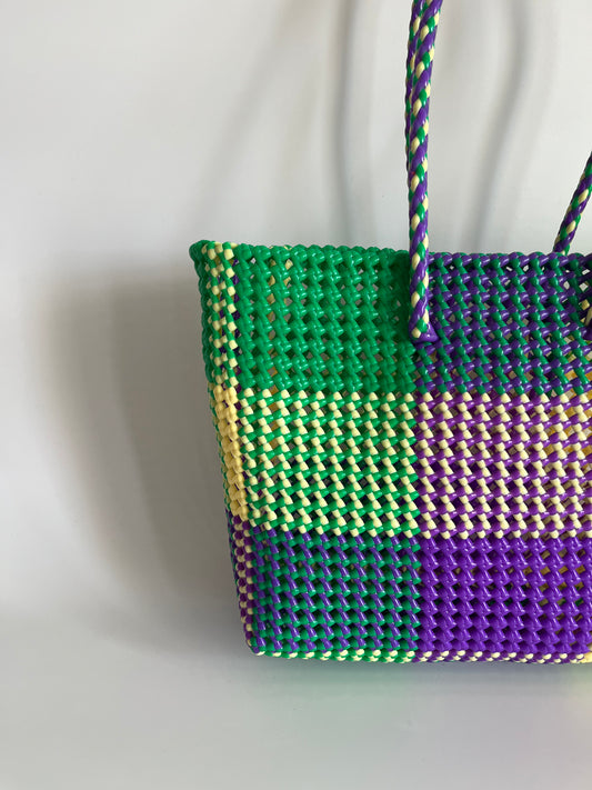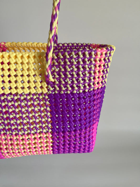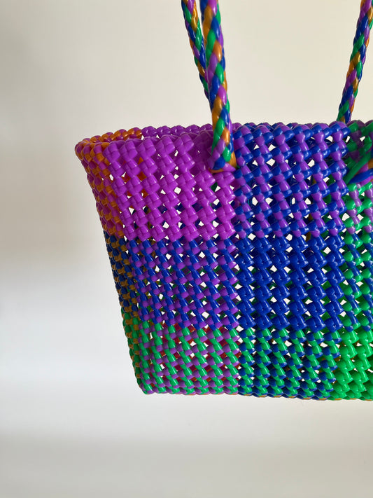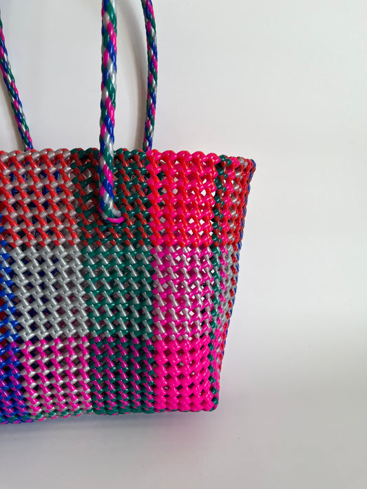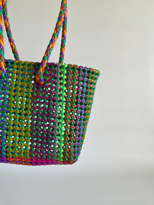 N°489S - SAC PANIER TRESSÉ MAIN - PETIT - multicolors