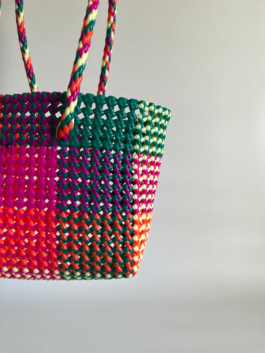 N°457S - SAC PANIER TRESSÉ MAIN - PETIT - multicolors