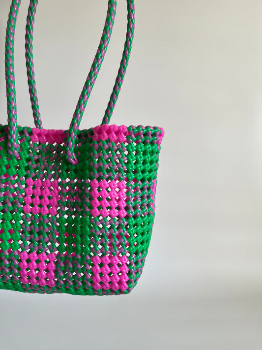N°19S bis - SAC PANIER TRESSÉ MAIN - PETIT - rose clair & vert