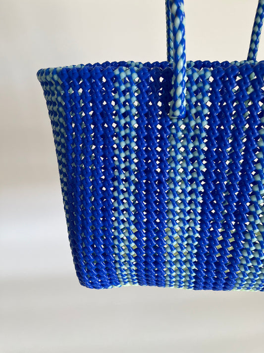 N°491L - SAC PANIER TRESSÉ MAIN - GRAND - bleu foncé & écru