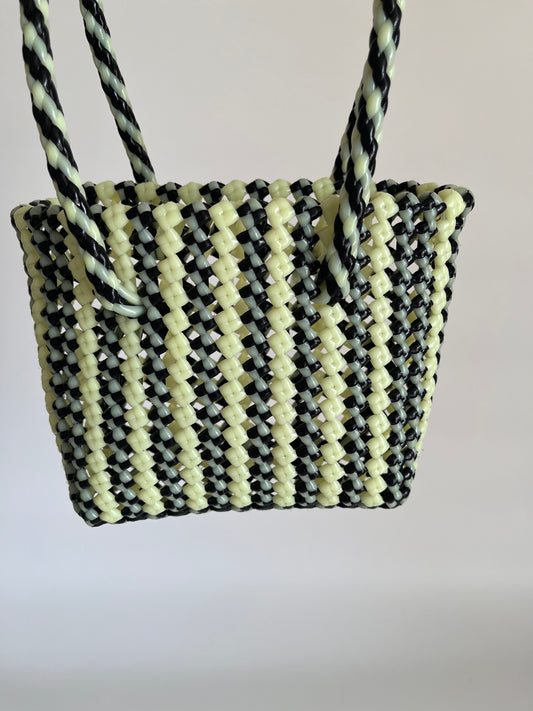 N°212XS bis - SAC PANIER TRESSÉ MAIN - MINI - noir & écru