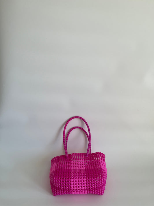 N°26S - SAC PANIER TRESSÉ MAIN - PETIT - rose foncé & rose clair