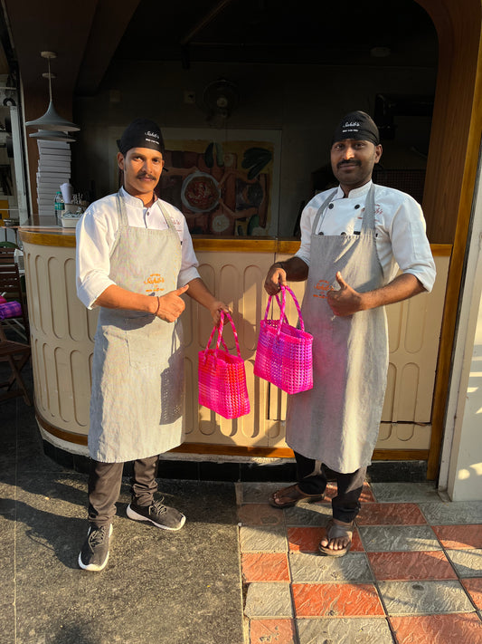 No. 15L - Hand-woven basket bag - large - neon pink & dark blue