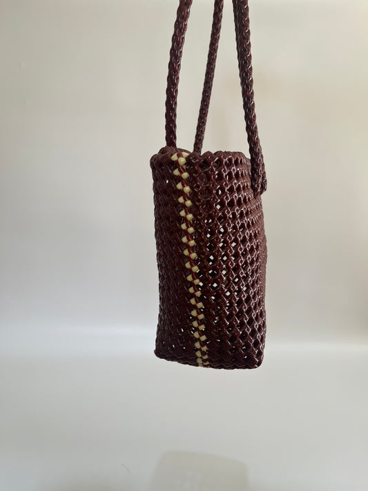 No. 257S - HAND-BRAIDSTAKEN BASKET BAG - SMALL - burgundy & cream
