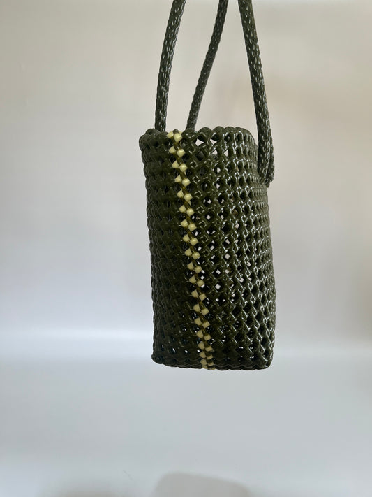 No. 45XS - Hand-braided basket bag - mini - khaki & cream