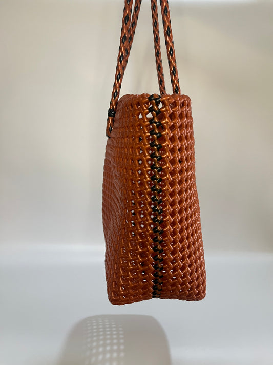 No. 315M - Hand-braided basket bag - medium - bronze & black