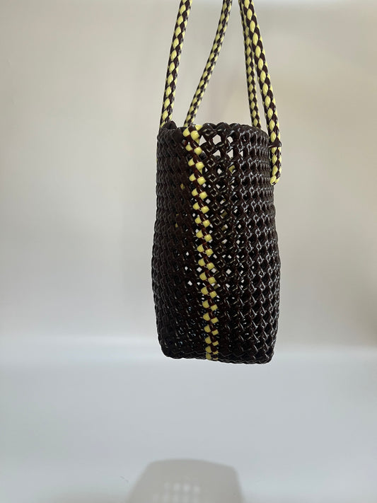 No. 266S - Hand-braided basket bag - small - brown & cream