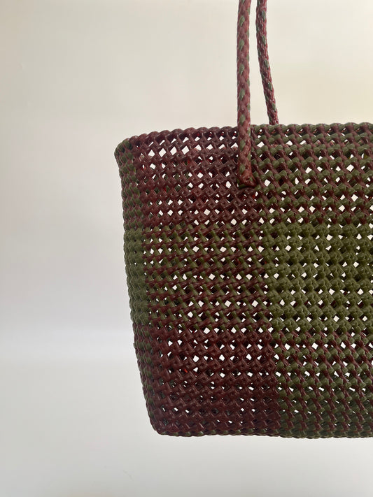 No. 516L - Hand-woven basket bag - large - burgundy & khaki