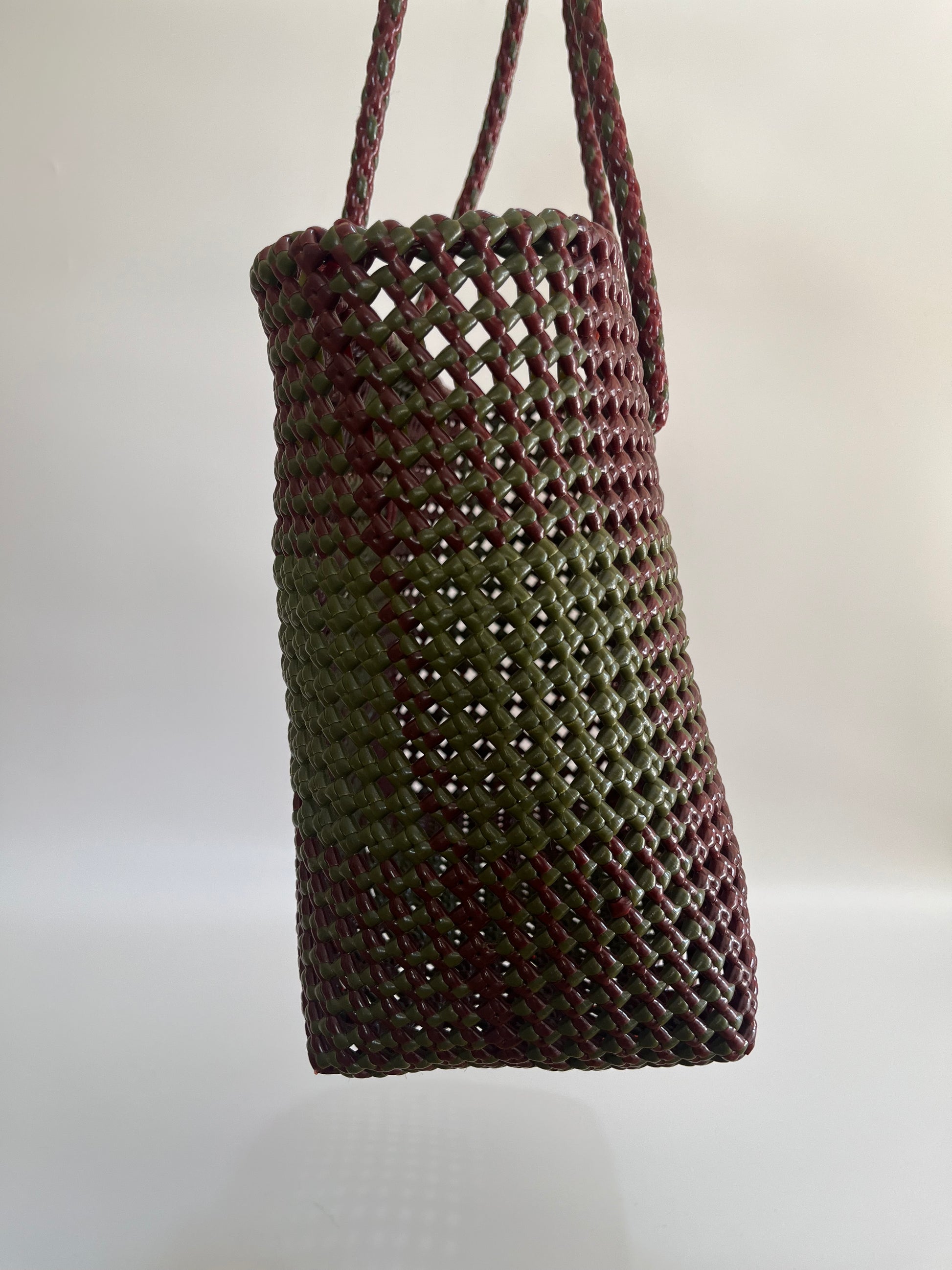 No. 516L - Hand-woven basket bag - large - burgundy & khaki