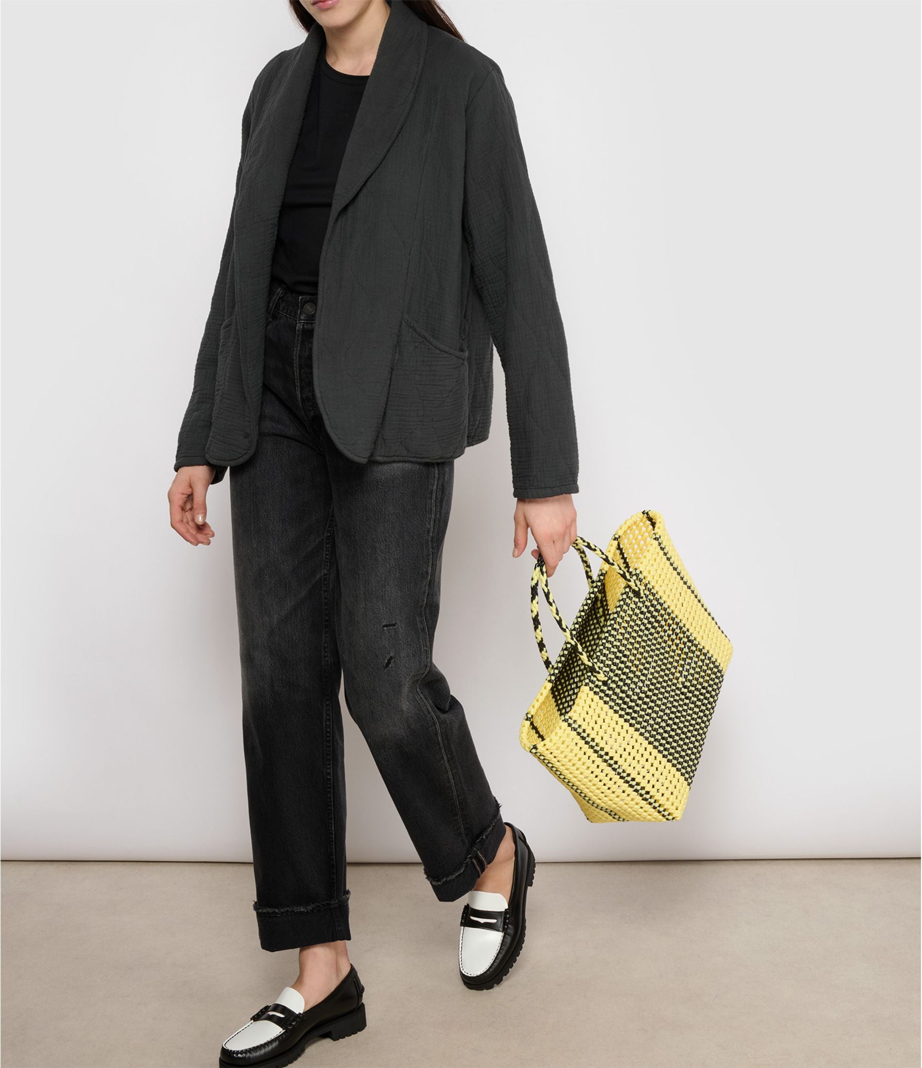 N°154L - SAC CABAS TRESSÉ MAIN - GRAND - noir & crème