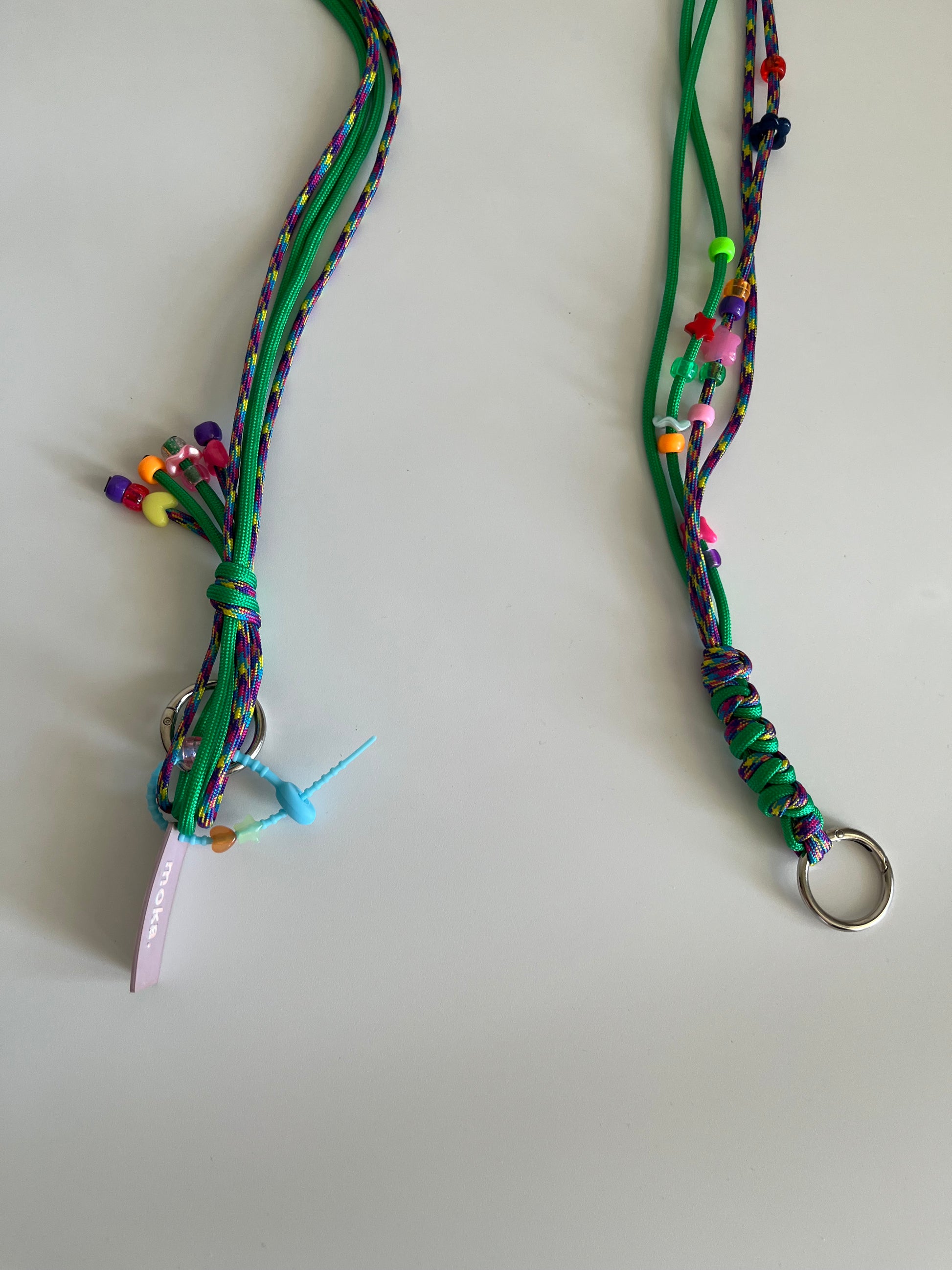 Les bandoulières sont parfaites pour les sacs mini & petits. Sangle réglable, ornée de perles, avec bande tressée pour plus de confort sur l’épaule. Deux mousquetons pour une fixation facile aux sacs Moka. Nœud réglable pour adapter la longueur selon votre style.