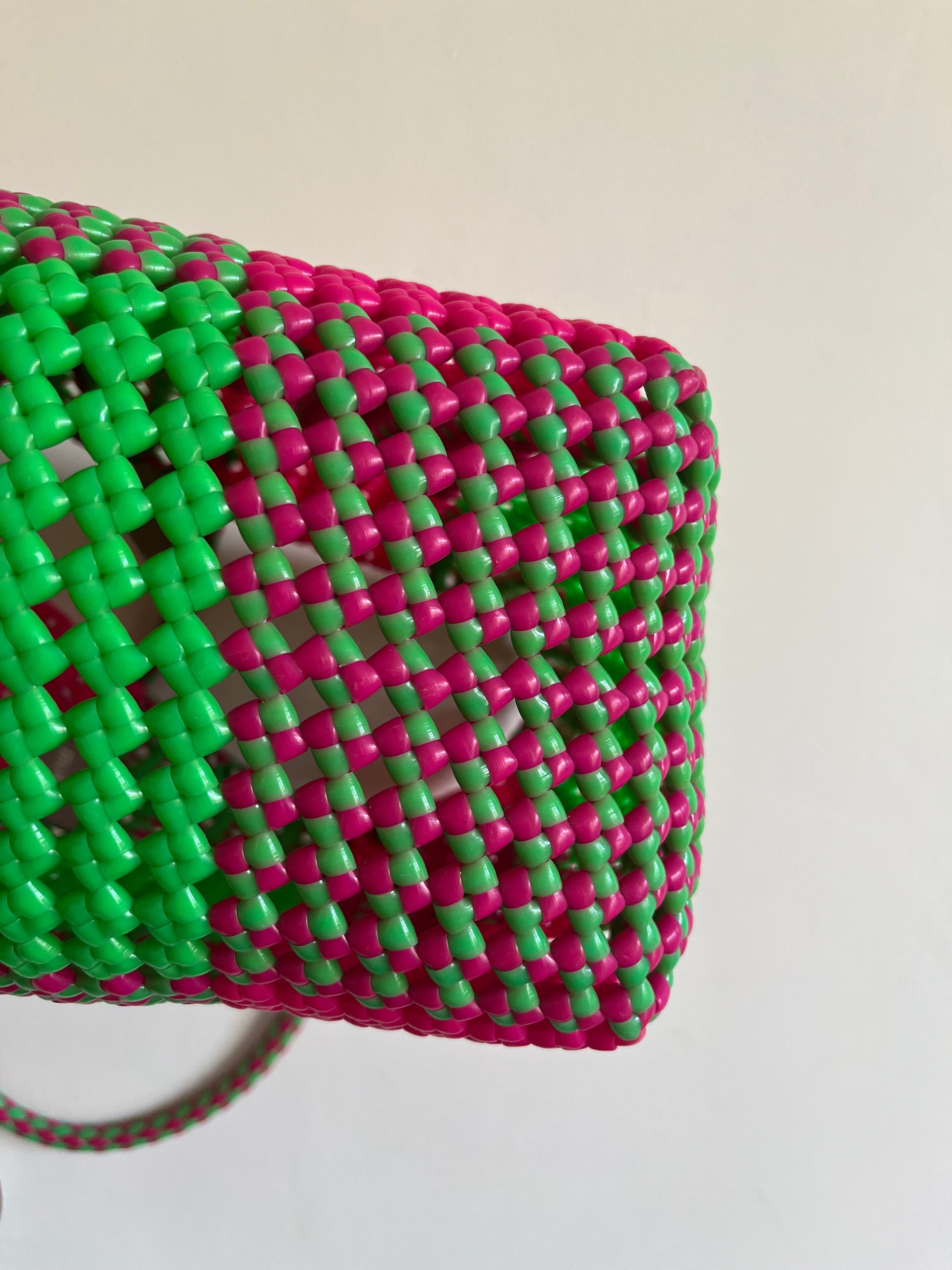 N°20M - SAC CABAS IMPARFAIT - MOYEN - rose fluo & vert fluo