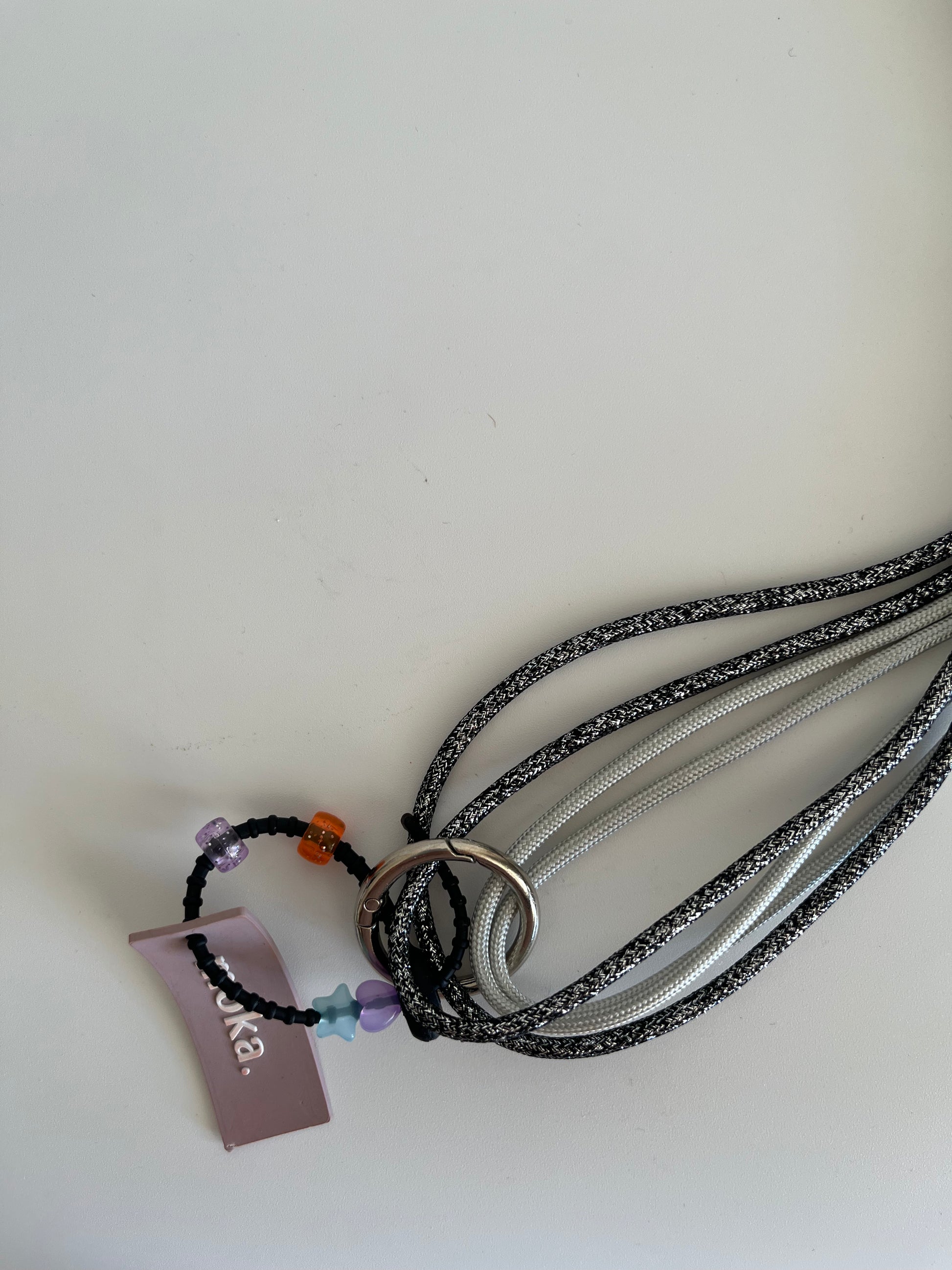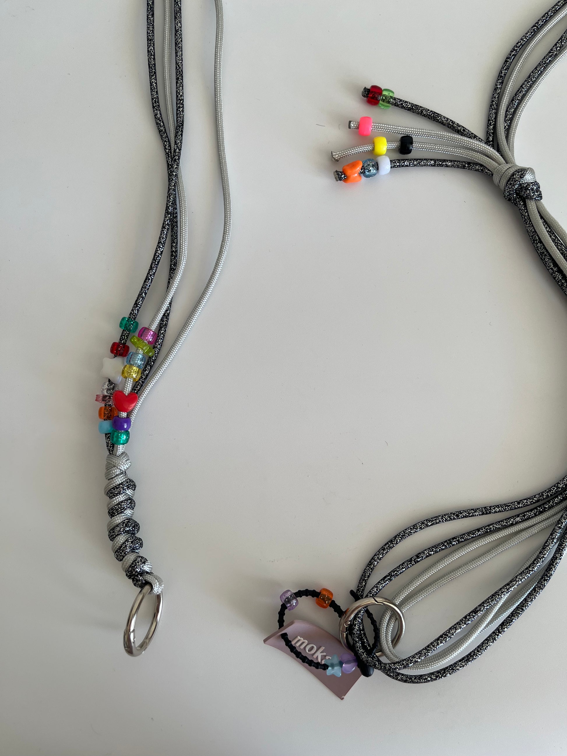 Les bandoulières sont parfaites pour les sacs mini & petits. Sangle réglable, ornée de perles, avec bande tressée pour plus de confort sur l’épaule. Deux mousquetons pour une fixation facile aux sacs Moka. Nœud réglable pour adapter la longueur selon votre style.