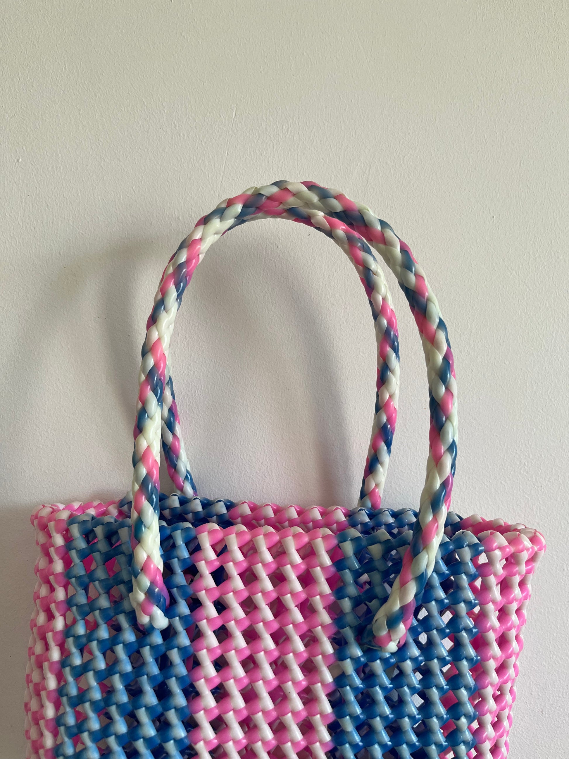 Taille : environ 30 x 20 x 13 cm - Sac/panier coloré mini modèle (XS) 2h de tissage