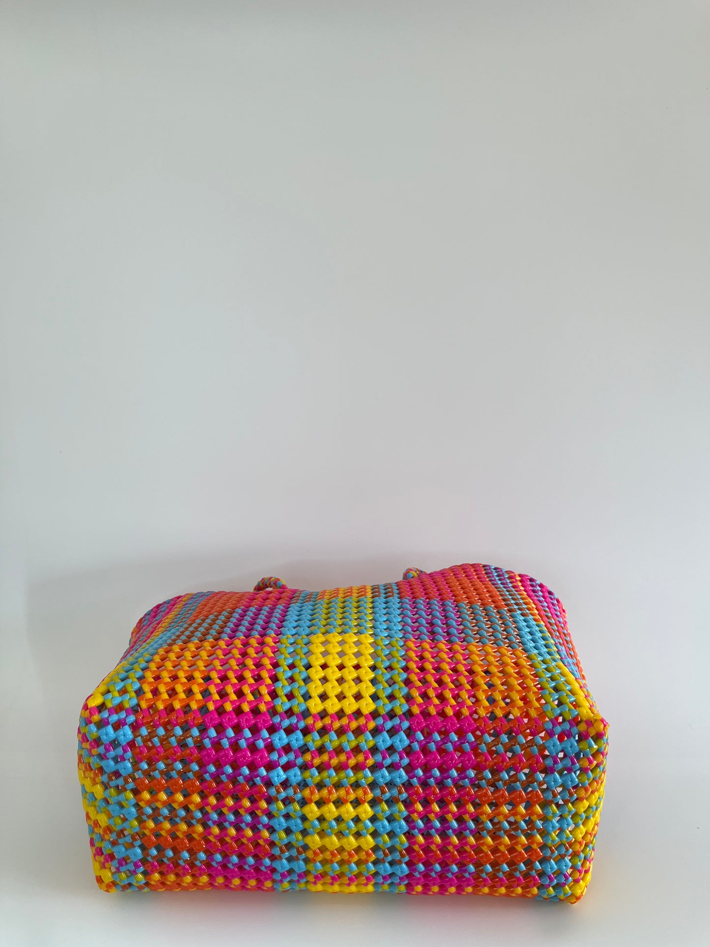 N°320L - SAC CABAS TRESSÉ MAIN - GRAND - multicolors