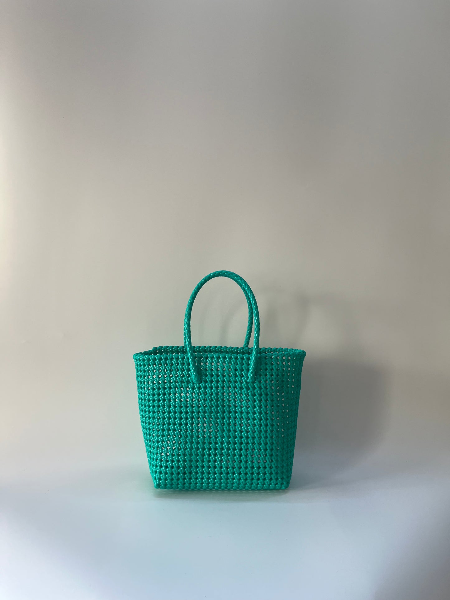 N°46M - SAC CABAS TRESSÉ MAIN - MOYEN - turquoise
