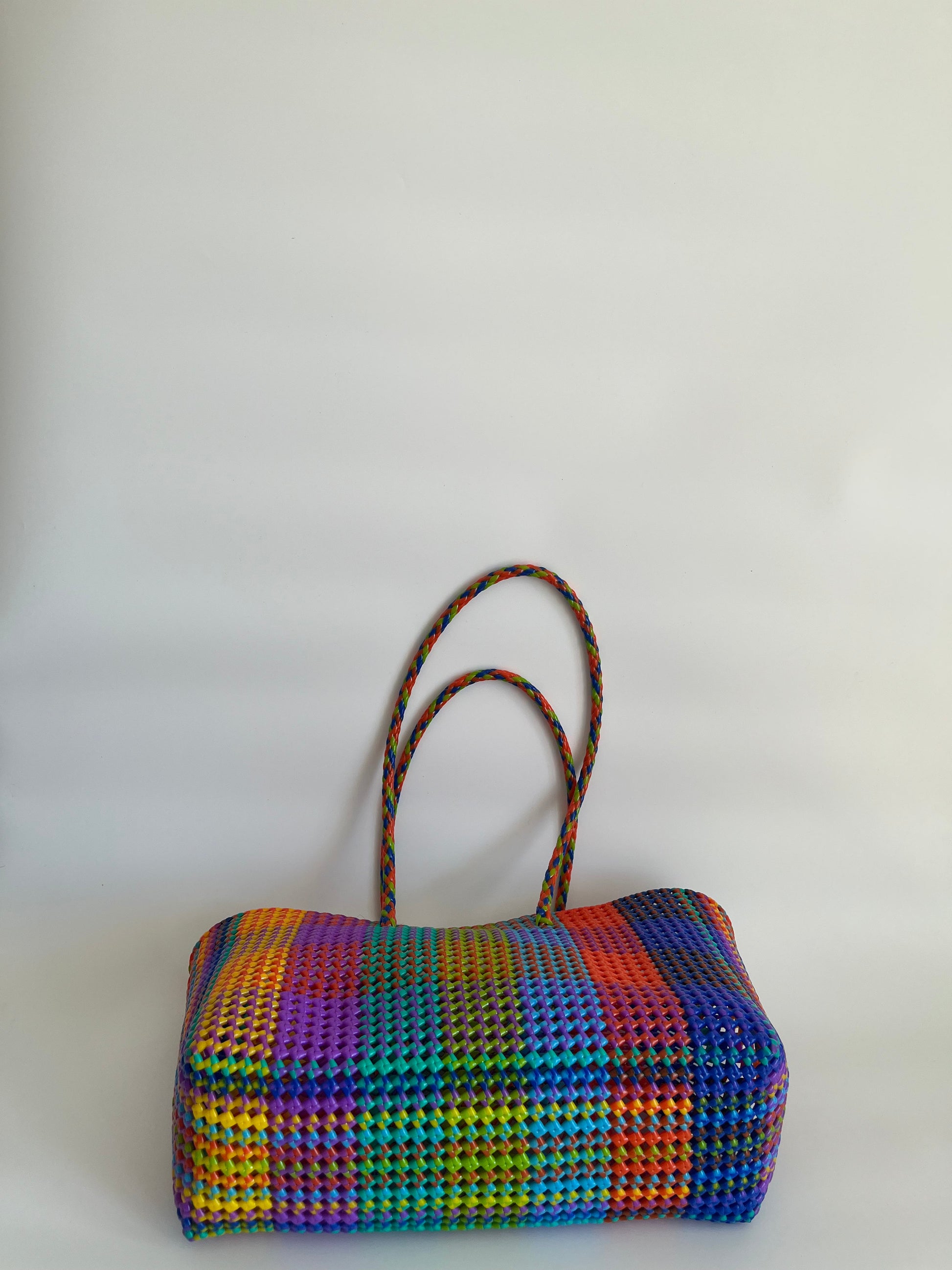 Taille : environ 30 x 20 x 13 cm - Sac/panier coloré mini modèle (XS) 2h de tissage