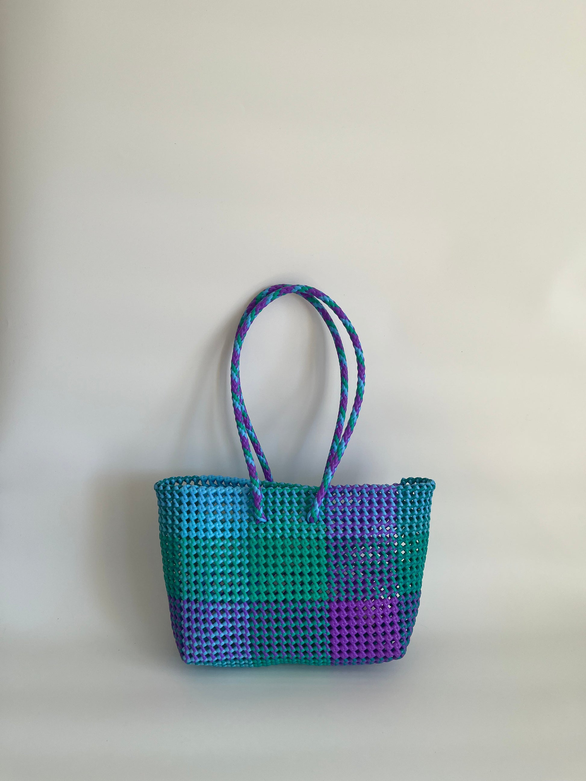 N°500M - SAC PANIER TRESSÉ MAIN - MOYEN - multicolors