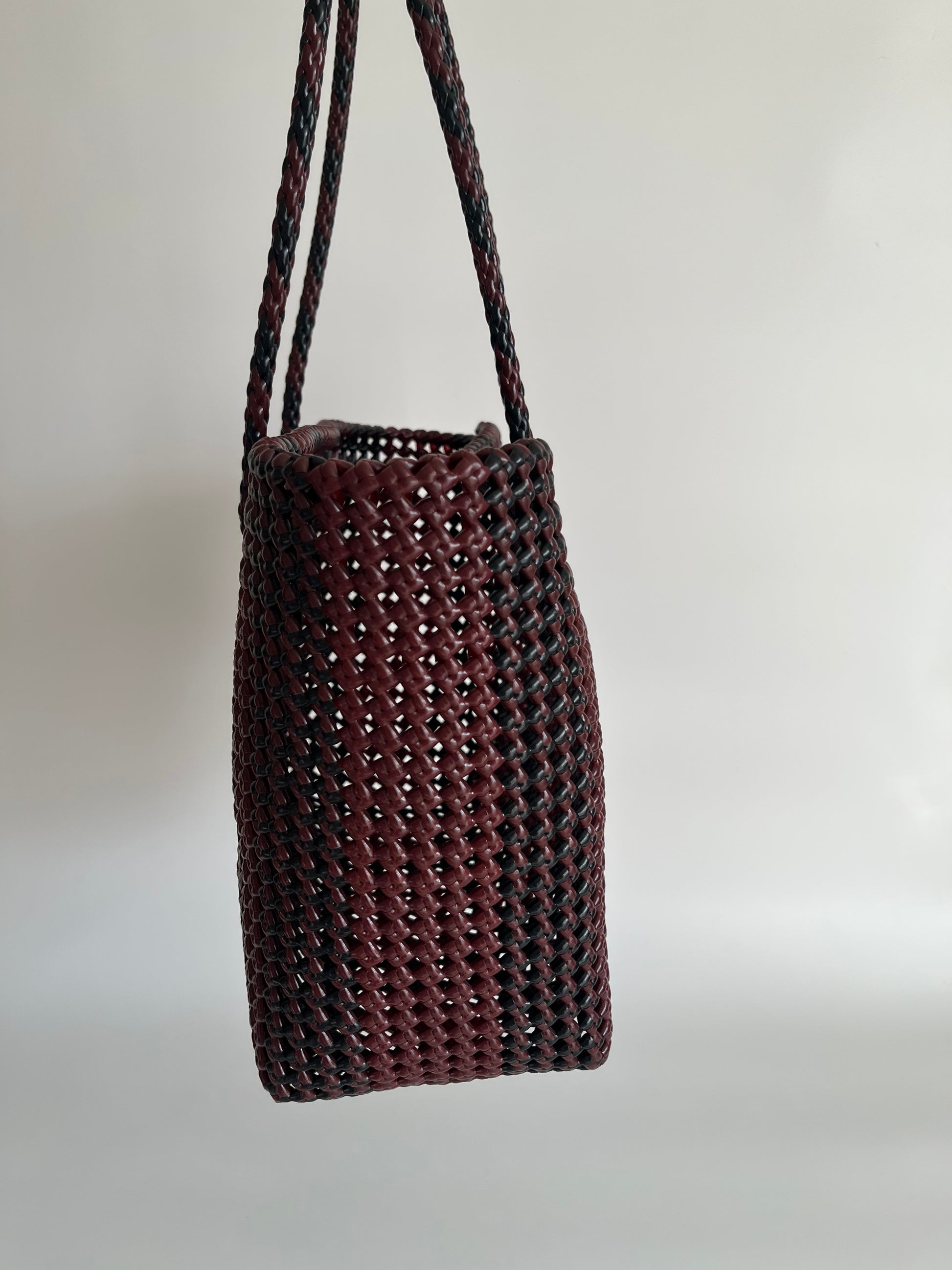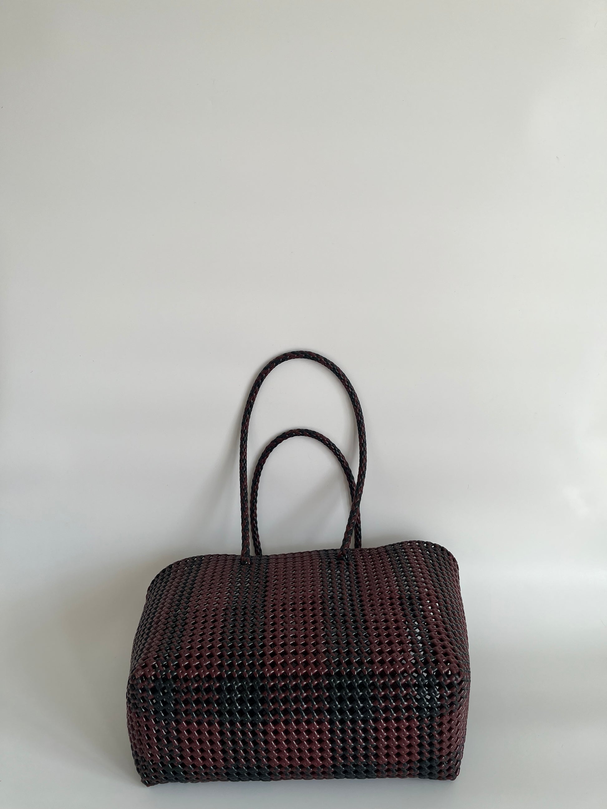 N°505L - SAC PANIER TRESSÉ MAIN - GRAND - noir & bordeaux