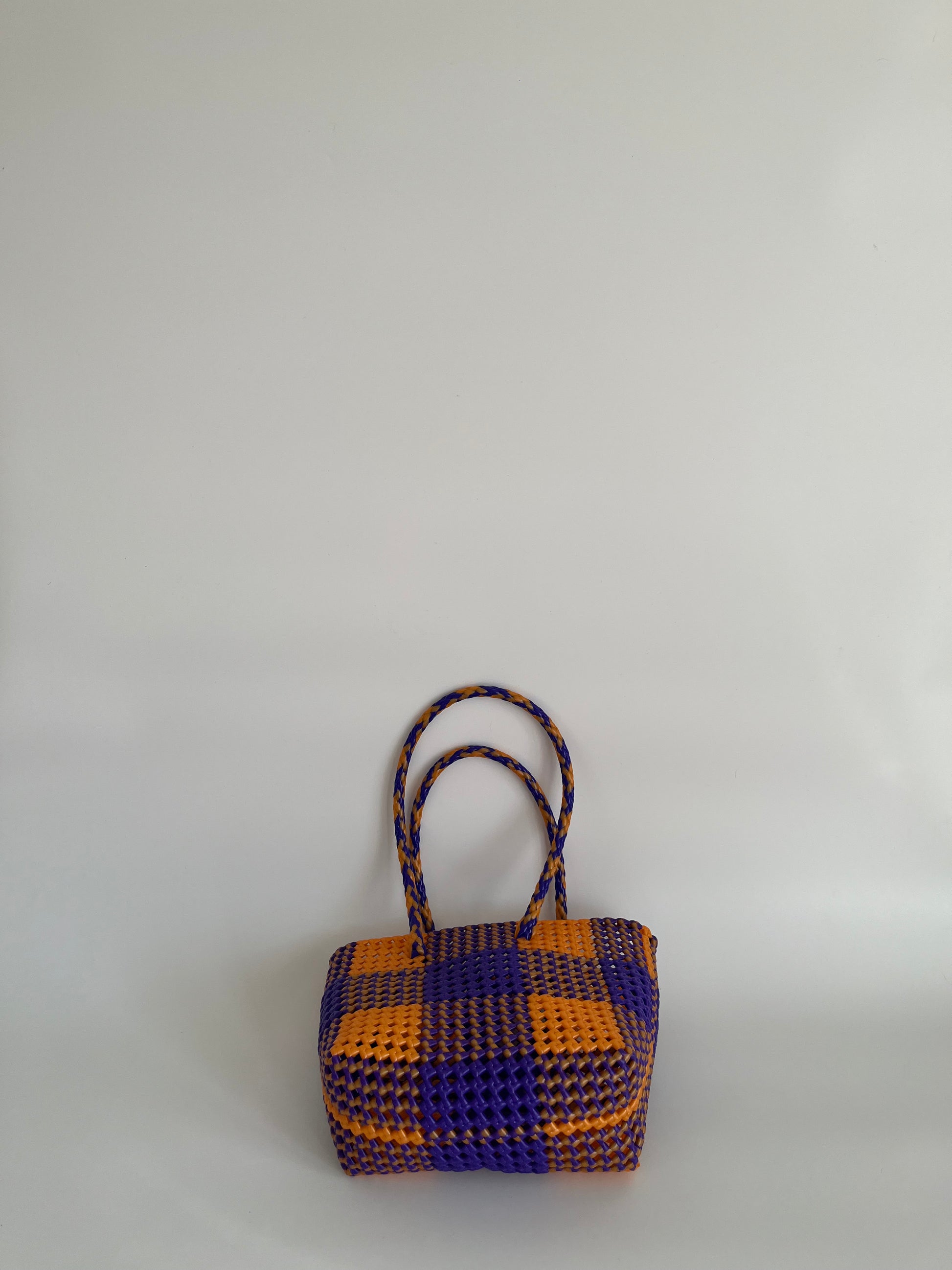 Taille : environ 30 x 20 x 13 cm - Sac/panier coloré mini modèle (XS) 2h de tissage