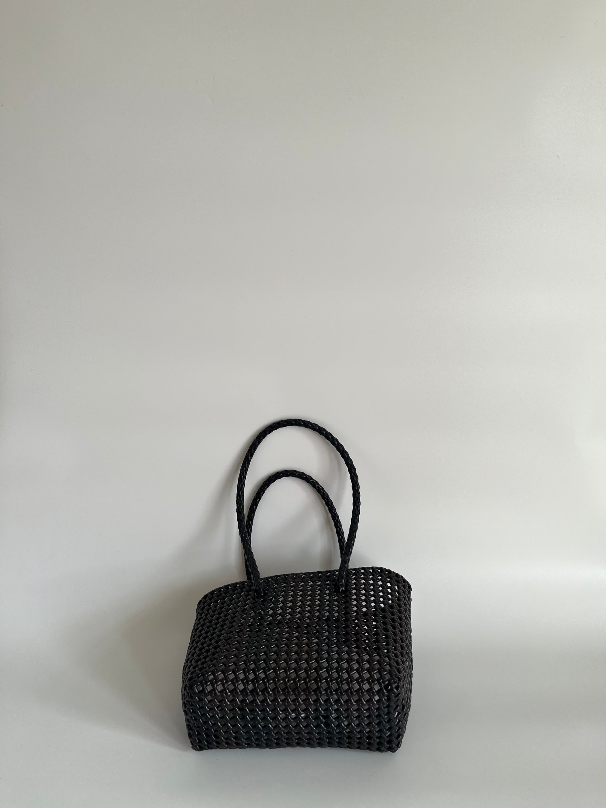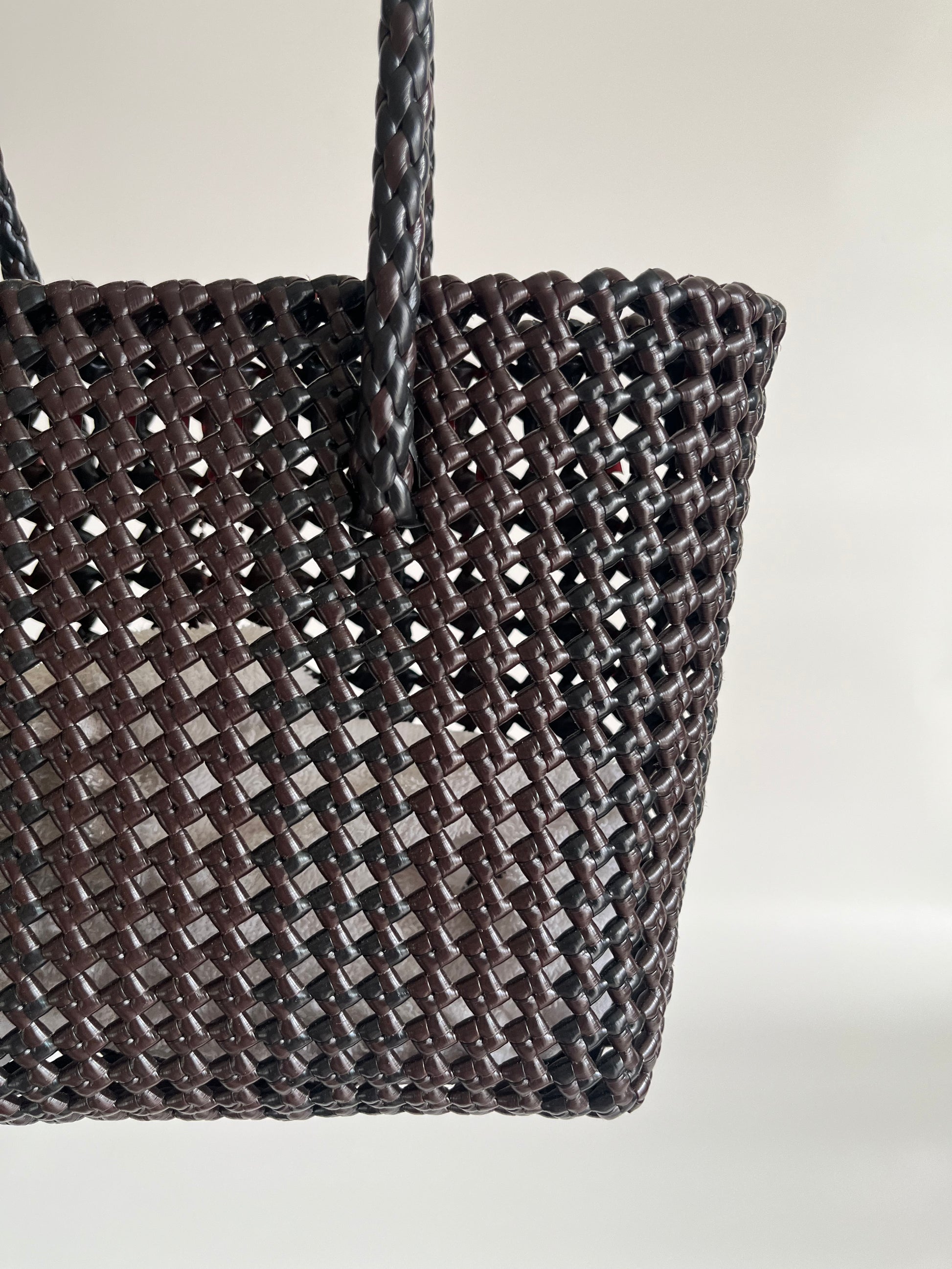 N°511S - SAC PANIER TRESSÉ MAIN - PETIT - noir & marron