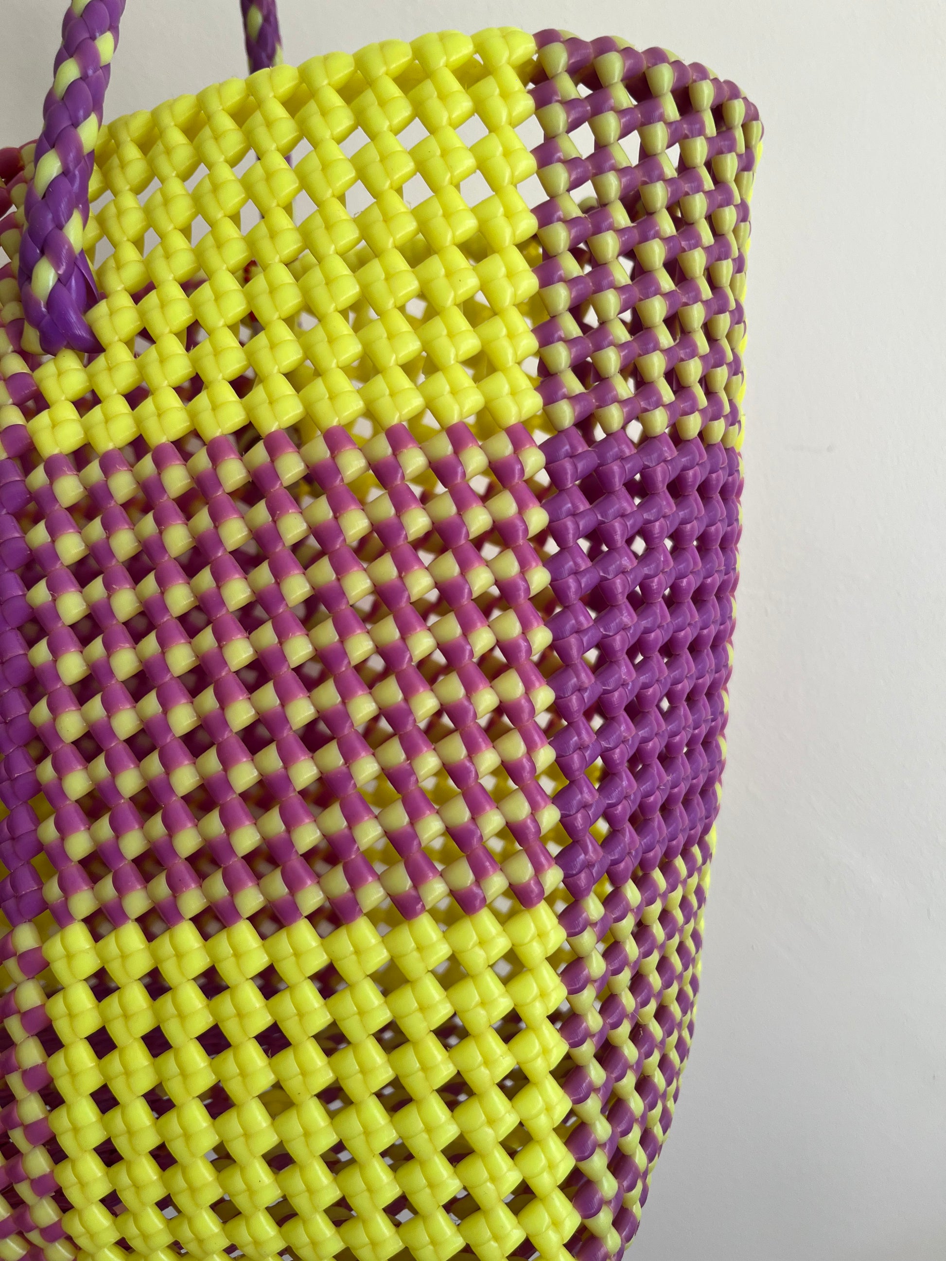 N°7L - SAC PANIER IMPARFAIT - GRAND - jaune fluo & violet