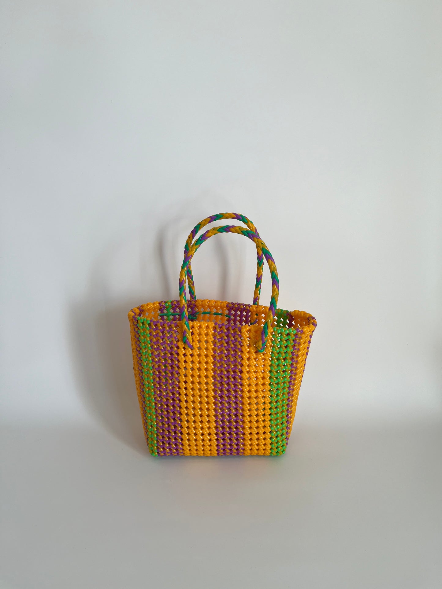 Taille : environ 30 x 20 x 13 cm - Sac/panier coloré mini modèle (XS) 2h de tissage